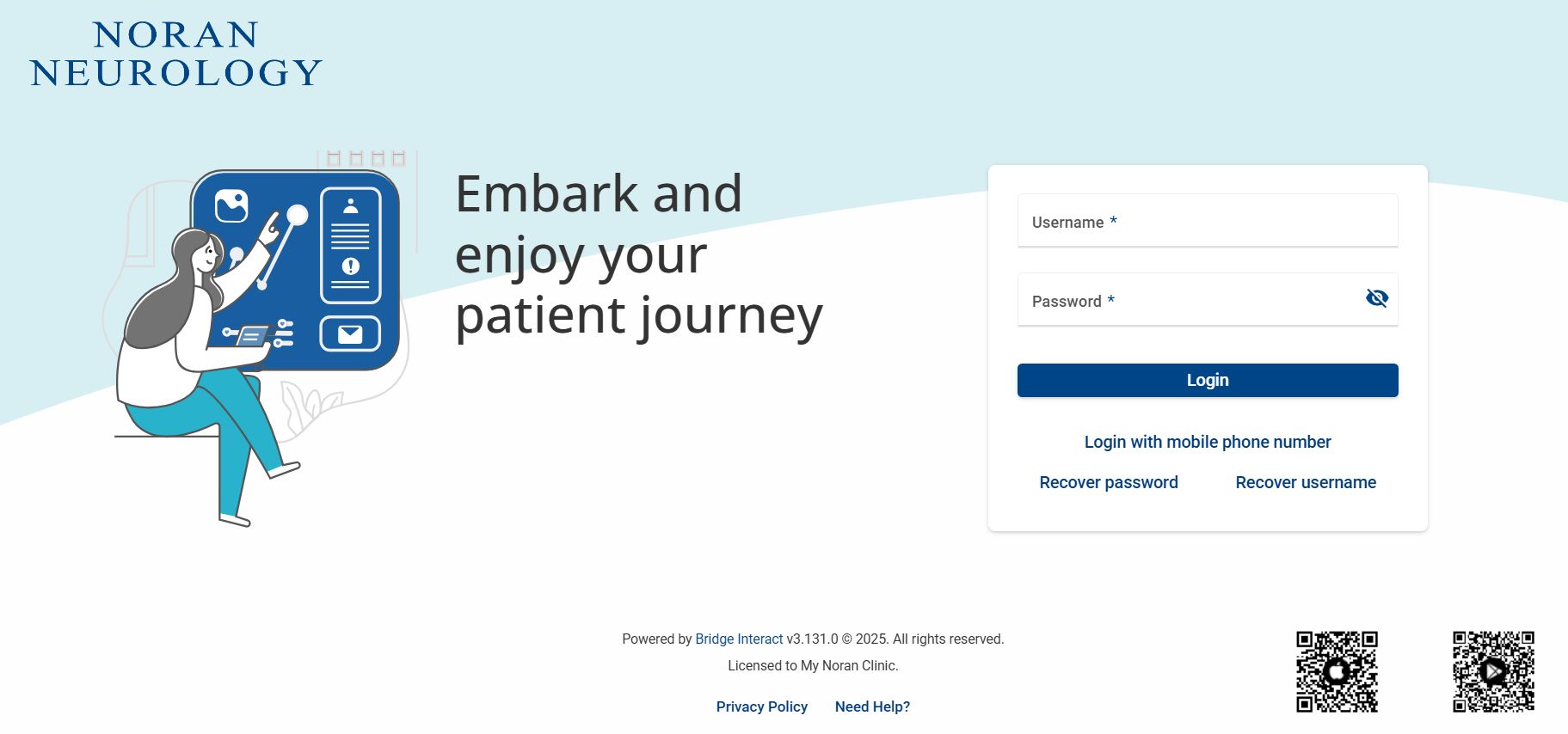 You must be an existing patient in order to enroll for the Patient Portal. You can self-enroll using the Login action button on My Noran Clinic, enroll over the phone with Noran Neurology staff, or enroll in-person at any one of our clinic locations. Please note that any patients under the age of 18 must be enrolled by Noran’s staff and will need a Caregiver assigned to access their account.